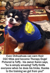 To provide optimal training experiences our classes are limited in size. We don't use a mega phone or other microphone devise - you'll easily hear and see everything. Additionally, we provide electronic materials recapping your weekly sessions. We also provide additional materials to help you raise a well-balanced puppy or to increase reliability for adolescents and adult dogs.